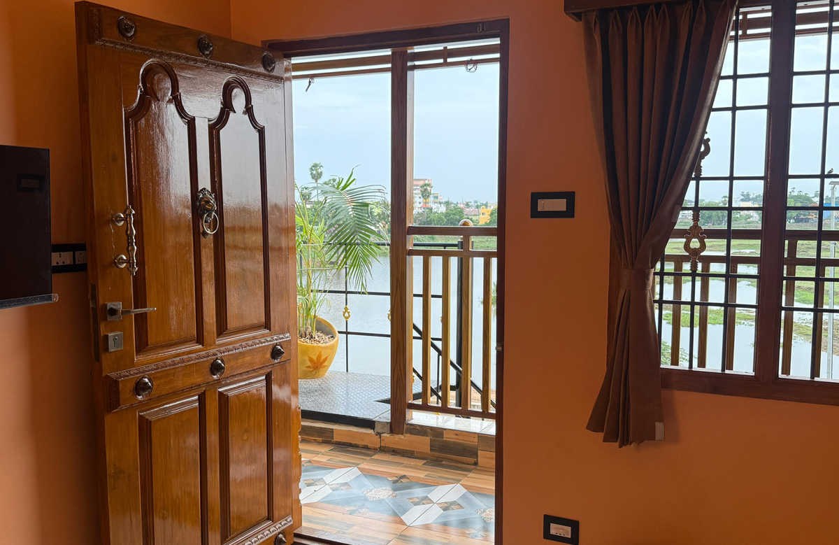 Located opposite the serene Velrampet Lake, Lake View Residency offers peaceful stays just 10 minutes from Rock Beach, French Colony, Botanical Garden, Sri Aurobindo Ashram, and more. Paradise Beach and Pondy Marina are just 15 minutes away.
